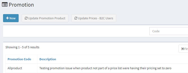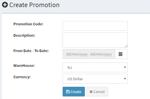 2) Select New to begin creating a new promotion. Fill in the following settings: