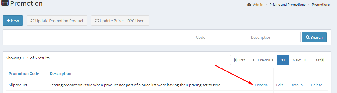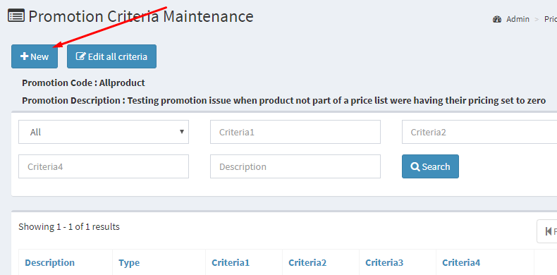 4) Find your new promotion in Promotions window and press the "Criteria" button
