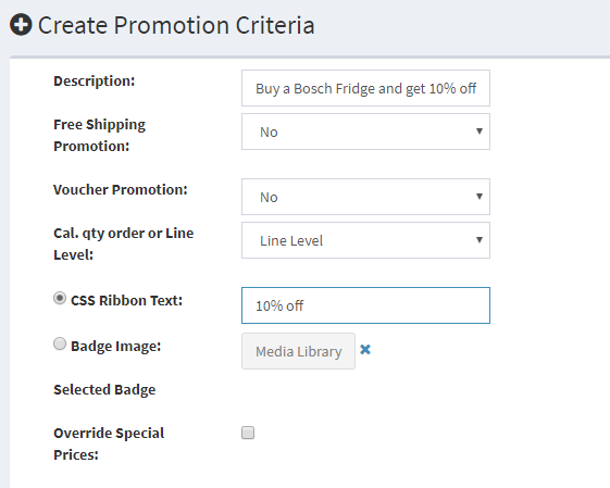 Override special prices: Tick this if you want the promotion to override a customer's special pricing.