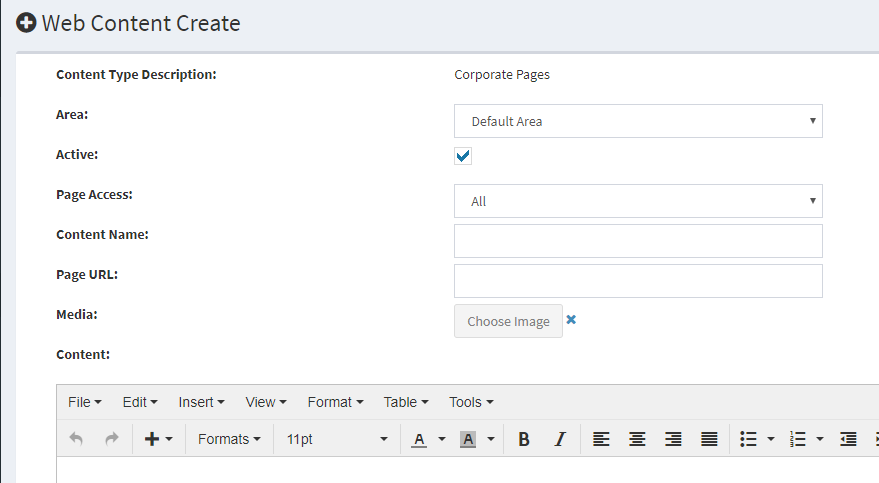 Content pages are called Corporate pages on ODSNet. Content pages can hold any information, text, images etc. they are often used to create "About Us", "Terms and Conditions" pages.
