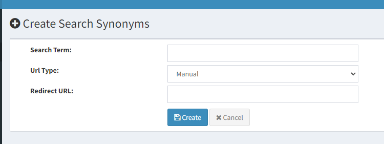 Search Synonyms shows a record of all the search terms used on site, their usage, the number of results, but we also allow the setup of specific terms, as well as the function to have these terms redirect to certain pages and or products.