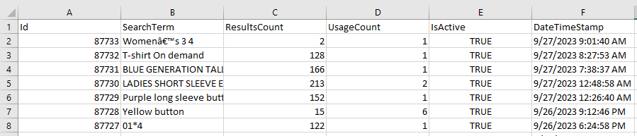Usage Count - Number of times that search term has been used.