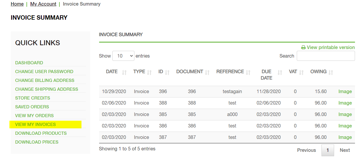 This category allows for configuration of the Print order page, this page is available to users after placing an order